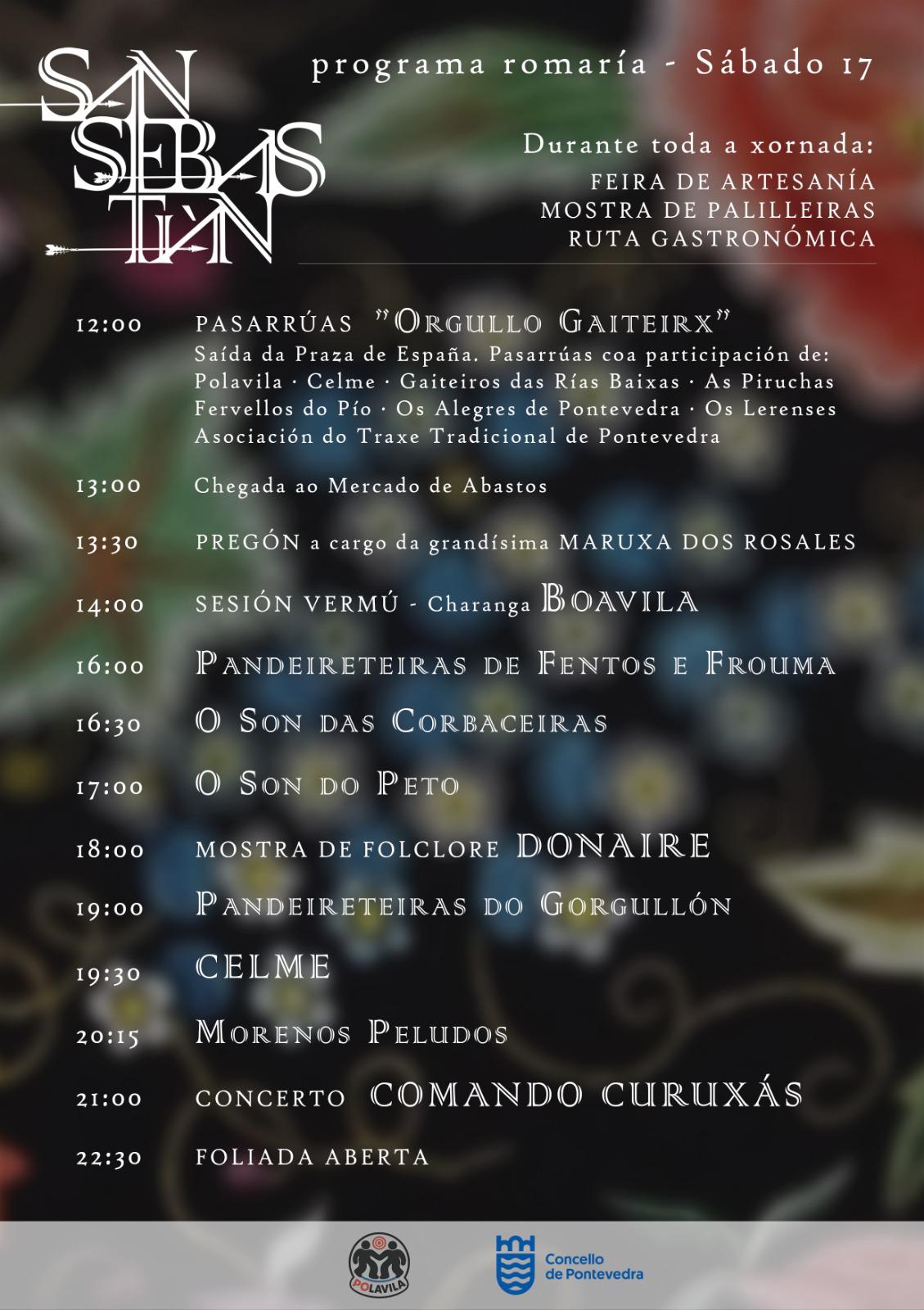 “Para iso esta romaría vai contar cun desfile de ‘Orgullo Gaiteiro’ desde a Praza do Concello ata o Mercado que agora explicará Miguel Fraguas de Polavila, que debullará toda a programación e quen son os oito grupos que van participar no desfile. A este desfile seguirá unha xornada de romaría con música, baile, xantar, artesanía, etc. E previamente, durante a semana, hai que preparar a romaría polo que temos toda unha semana de obradoiros e programación intensa que argallou a asociación Polavila á que temos que agradecer ese magnífico traballo. Queremos convidar aos pontevedreses e pontevedresas a participar da festas e se poden, que se sumen co traxe tradicional”.