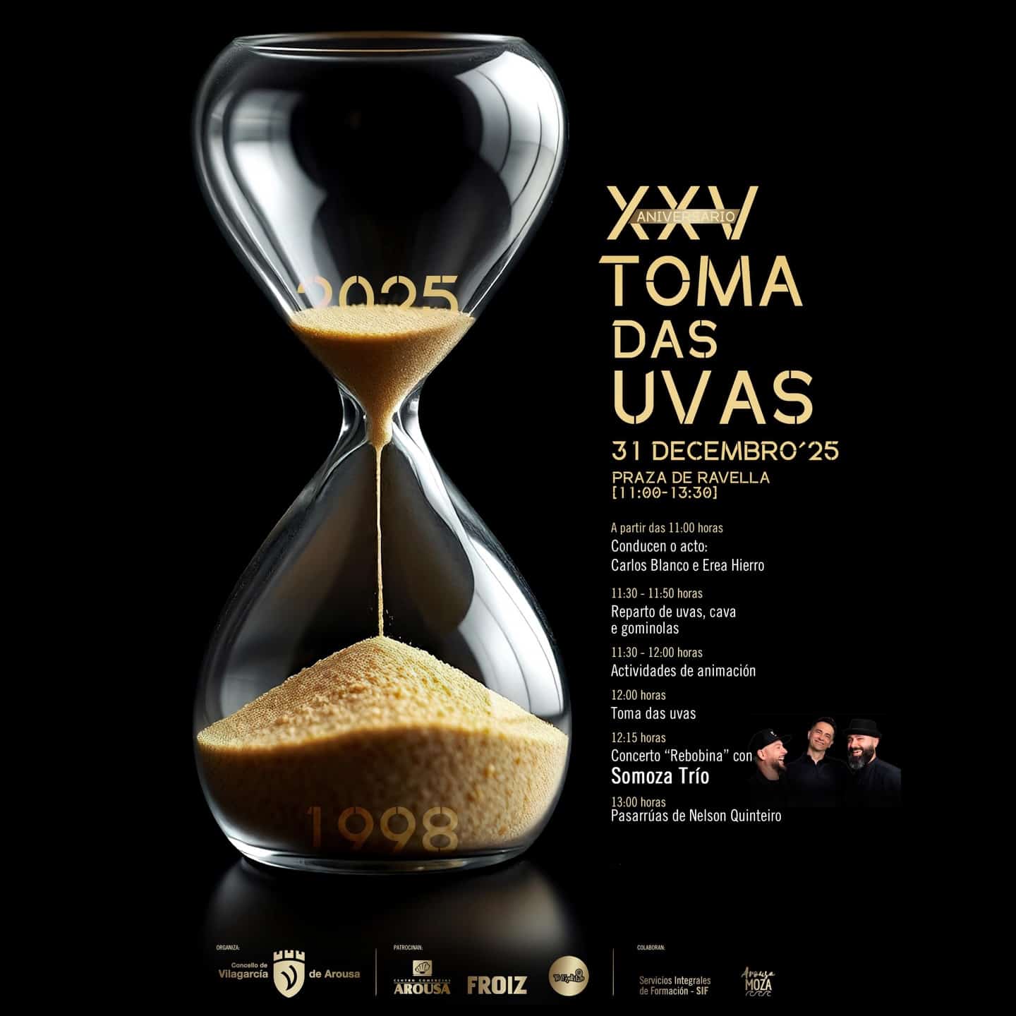 • A praza de Ravella volverá a acoller o día 31, mércores, ás 12:00 horas, a súa popular Toma das Uvas, que reúne a máis de 4.000 persoas vindas de moitos lugares de Galicia.