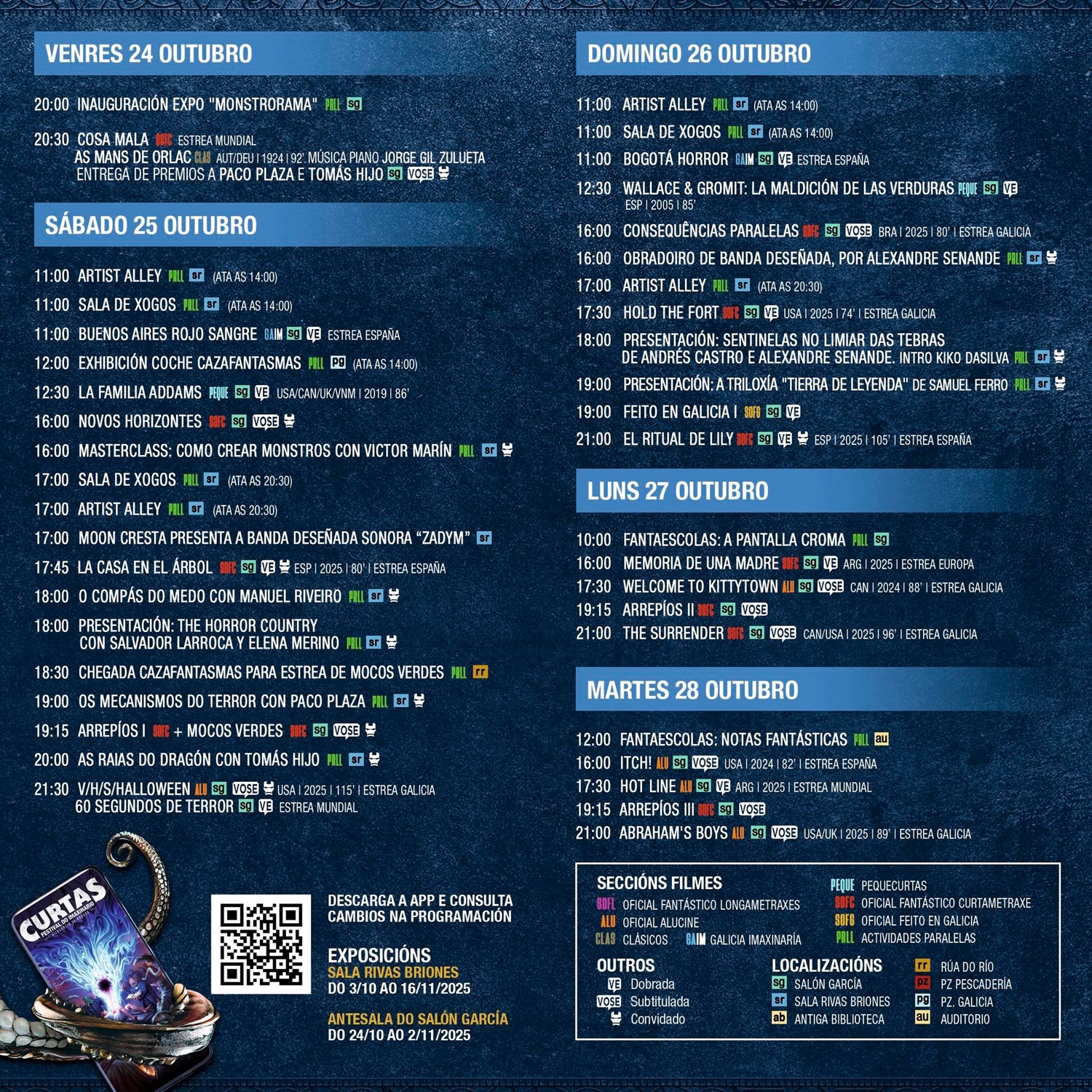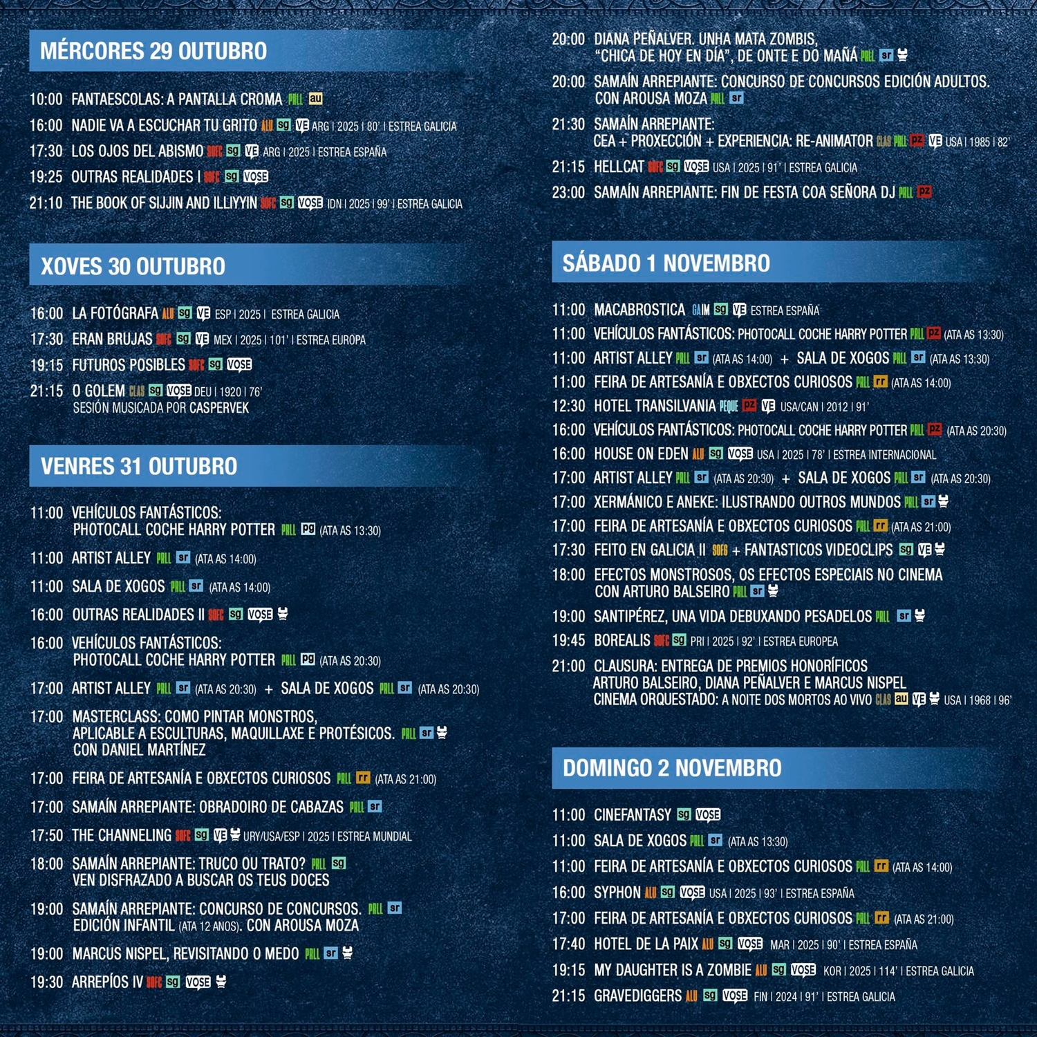 • Aínda que as exposicións comezaron xa o pasado día 3, o groso do programa arranca o venres que vén con obradoiros, charlas e proxeccións ata o 2 de novembro.