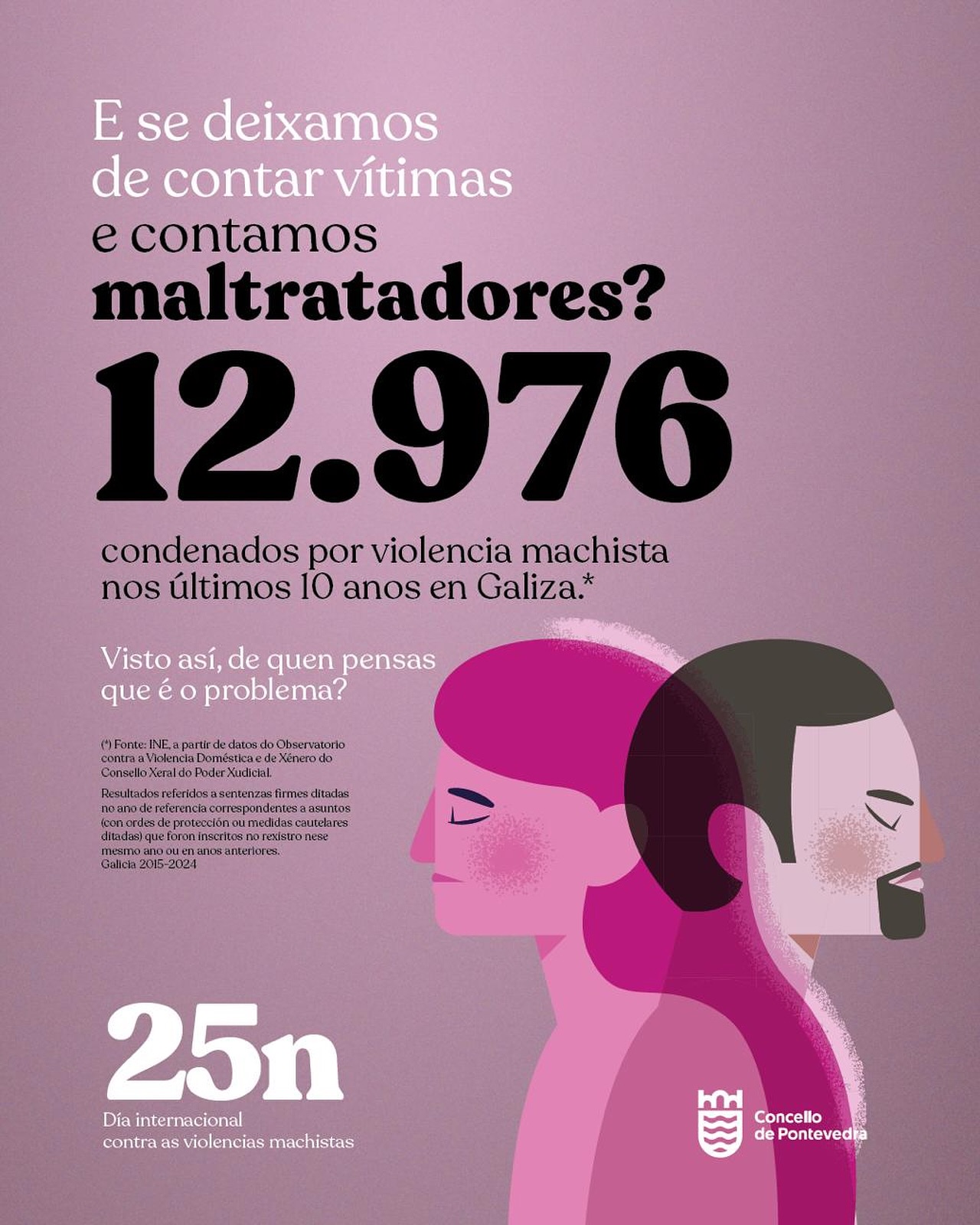 E se deixamos de contar vítimas e contamos maltratadores? Este 25N, Pontevedra pon o punto de mira onde debe estar: nos agresores, non nas mulleres que sofren a violencia
