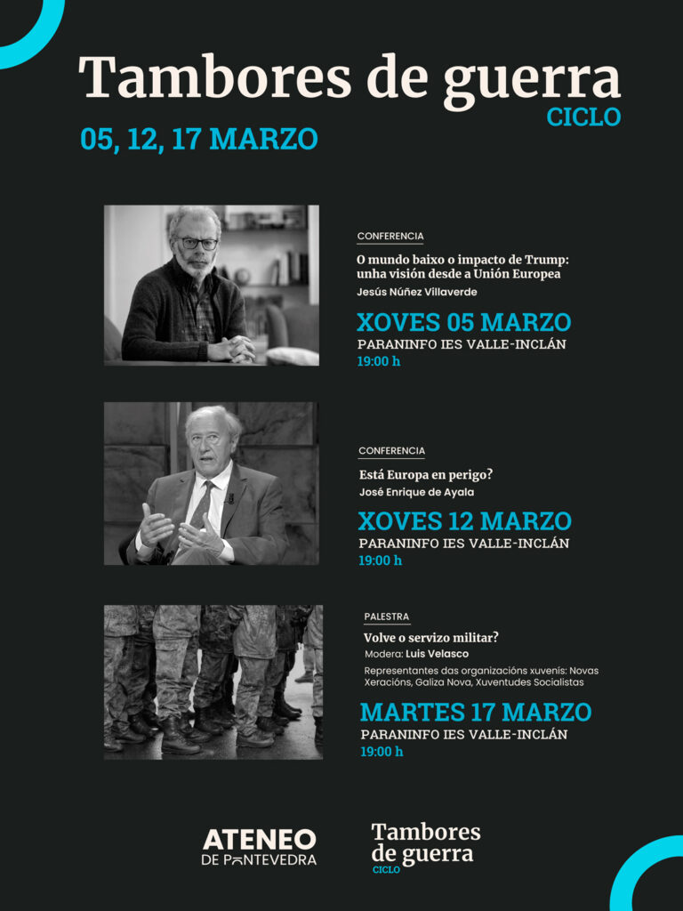 Los días 05, 12 y 17 de marzo, el Ateneo de Pontevedra organiza el ciclo ‘Tambores de guerra’, en el que se celebrarán dos