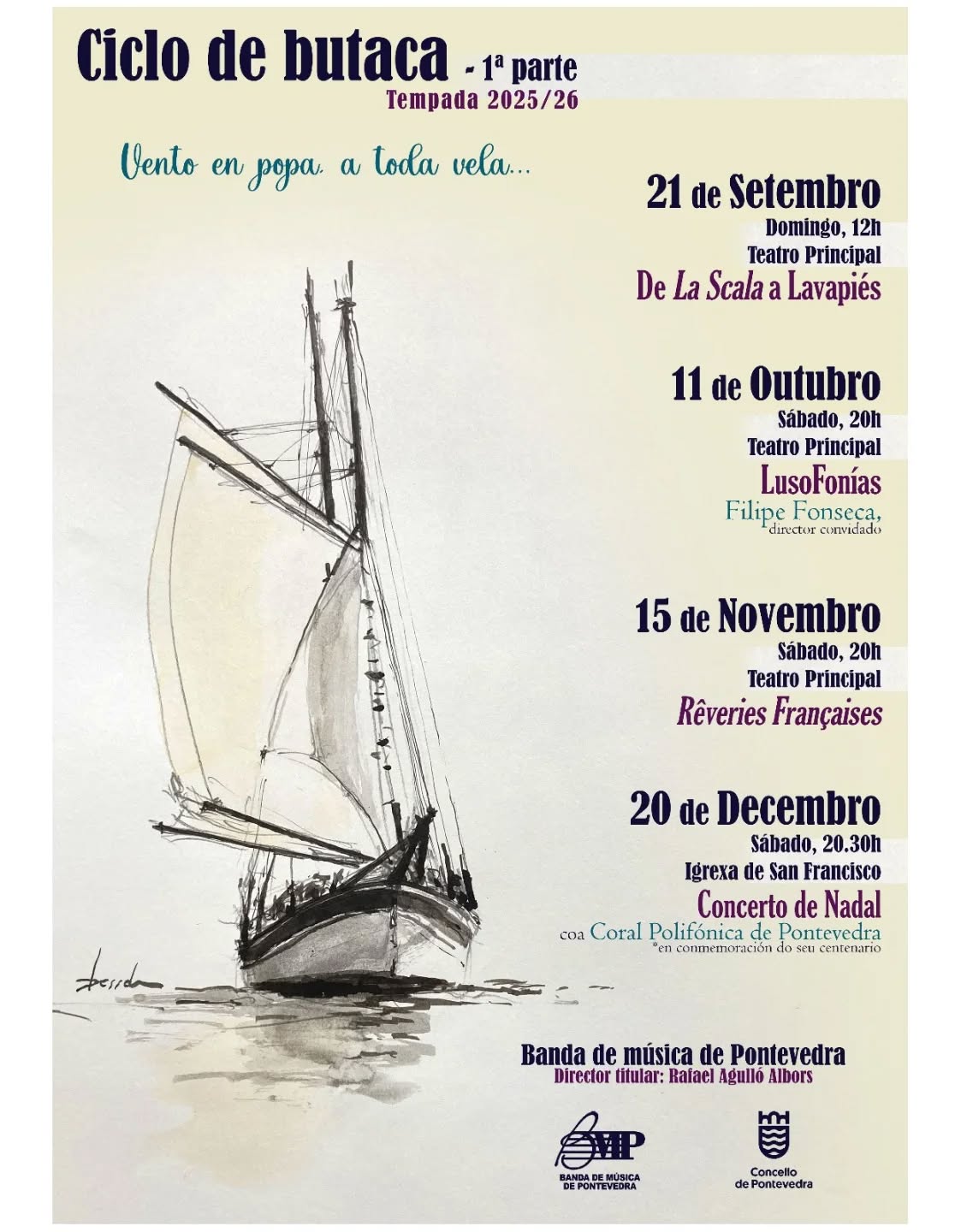 La Banda de Música de Pontevedra cerrará la primera parte del Ciclo de Butaca ‘Viento en popa a toda vela…’, el sábado 20 de