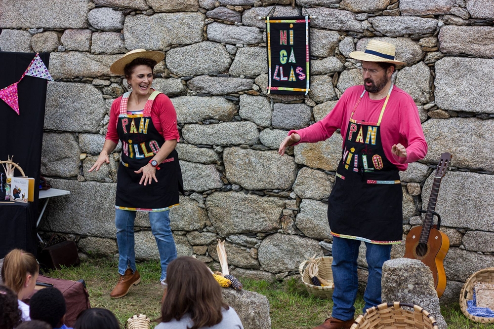 ‘Merenda con pan de millo’ es un espectáculo basado en elro-disco ‘Pan de millo’. En él se combinan canciones y narración oral, con el proceso de elaboración del pan de maíz como hilo conductor.