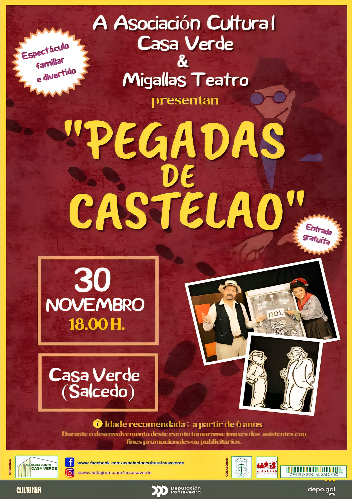 El domingo 30 de novembro, a las 18.00 horas, en la Casa Verde de Salcedo, la compañía Migallas Teatro representará el espectáculo ‘Pegadas de Castelao’.