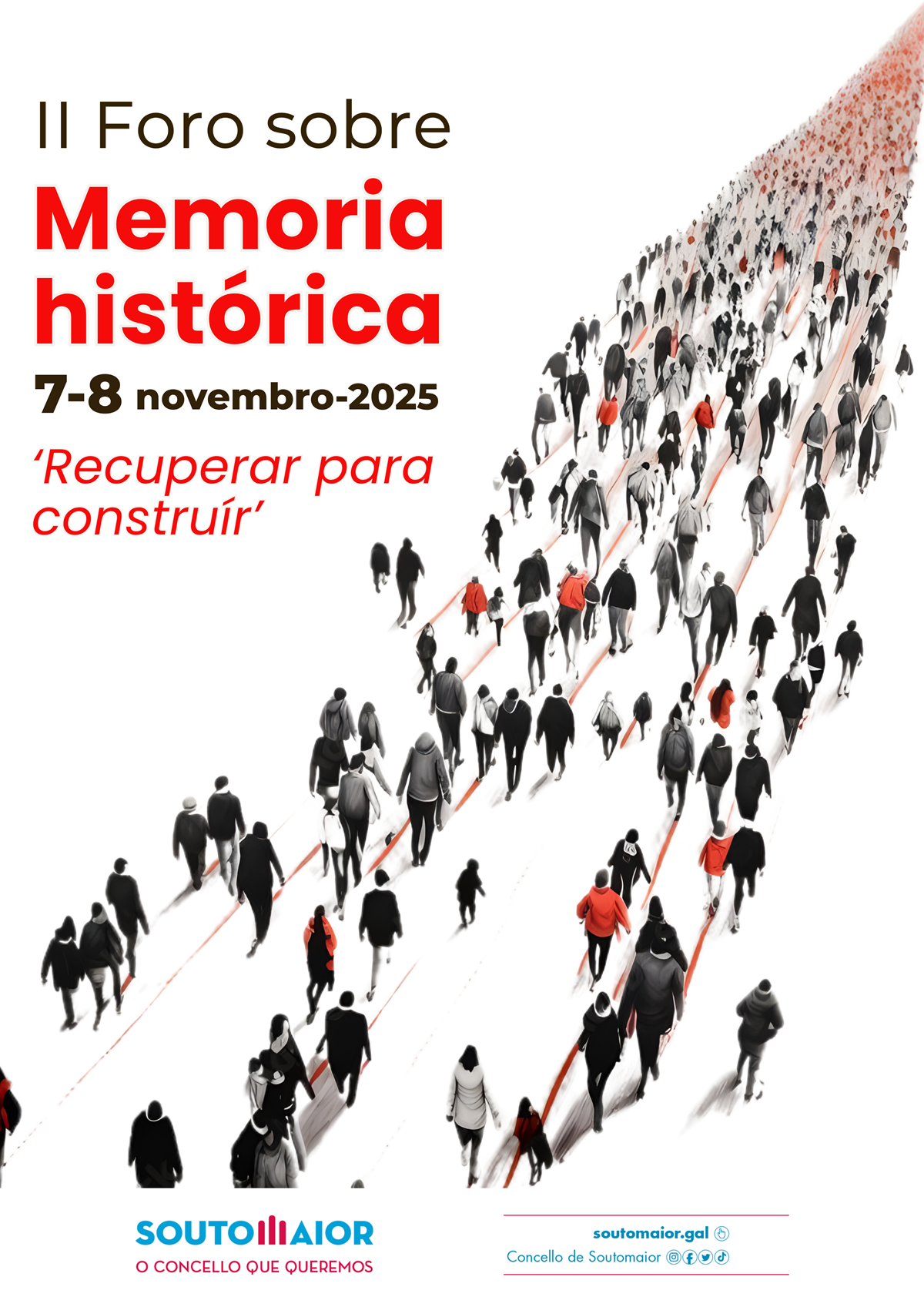 El Concello de Soutomaior presenta la segunda edición del Foro sobre Memoria Histórica para continuar poniendo sobre la mesa a necesidad de recuperar la memoria perdida de la guerra y de la posguerra, transmitir a la sociedad actual y futura su pasado reciente para poner en común y debatir sobre la necesidad de hablar de nuestra memoria y de las personas represaliadas.
