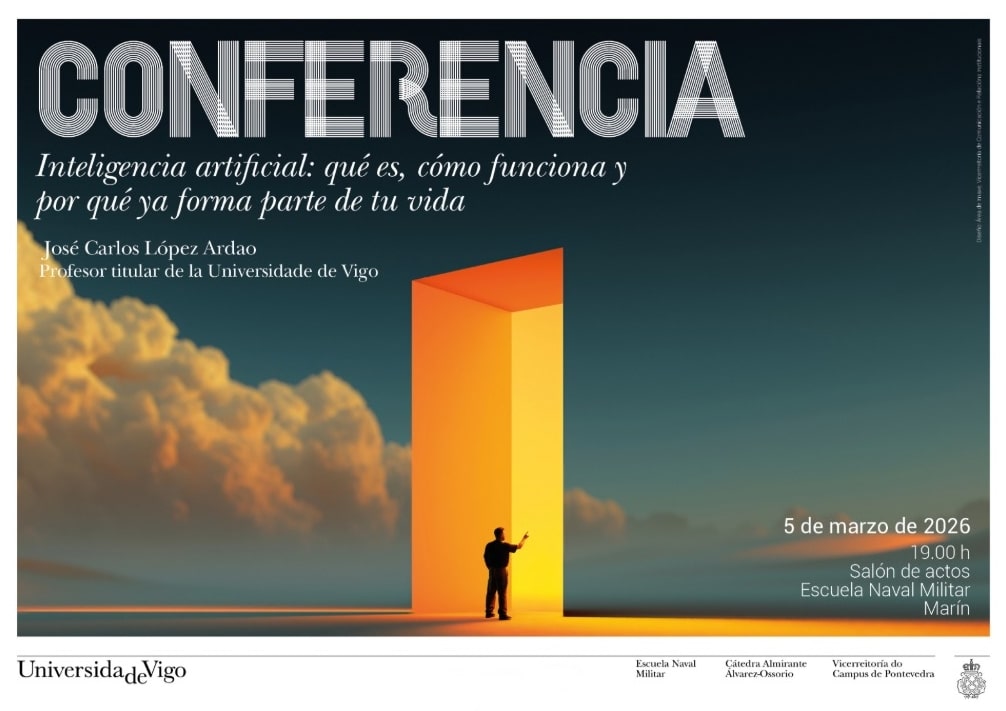 No marco das actividades da Cátedra Almirante Álvarez-Ossorio, que promoven conxuntamente a Universidade de Vigo e a Escola Naval Militar de Marín (ENM), o salón de actos deste centro acolle o xoves 5 de marzo a conferencia ‘Intelixencia artificial: que é, como funciona e por que xa forma parte da túa vida’, a cargo do profesor titular da Universidade de Vigo José Carlos López Ardao.