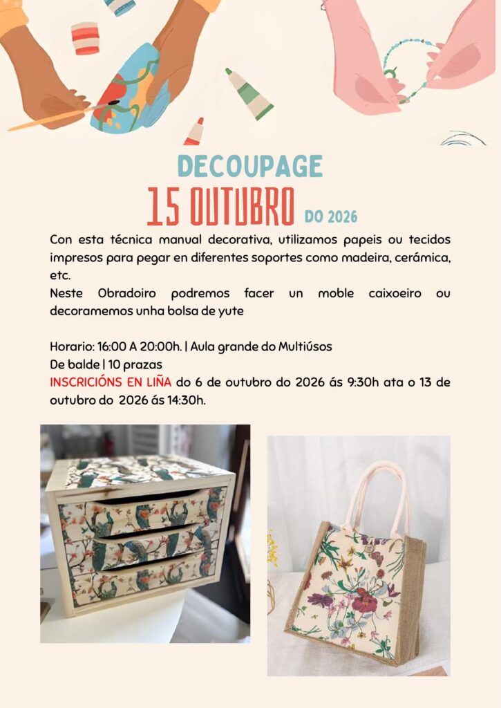 Todas estes obradoiros serán de balde, ata completar o aforo xa que contará con prazas limitadas.