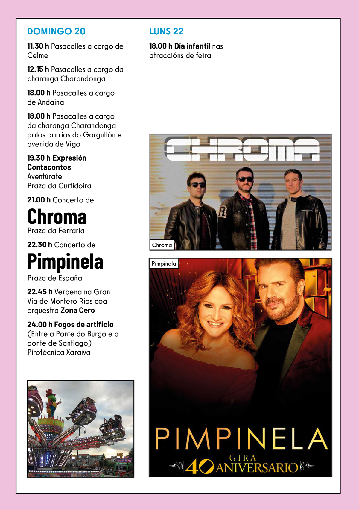 A programación das Festas da Peregina 2023 do domingo 20 de agosto é a seguinte: *Pimpinela non poderá actuar este