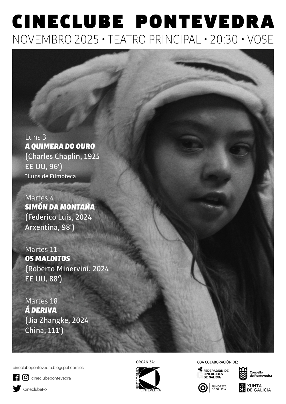 O Cineclube Pontevedra comeza a programación do mes de novembro coa proxección en copia restaurada dun dos máis belos filmes que deu o cinema: ‘A quimera do ouro’, de Charles Chaplin, no ano en que se celebra o centenario da súa estrea en Hollywood. Esta sesión, que terá lugar o luns 3 de novembro, realízase en colaboración coa Filmoteca de Galicia.