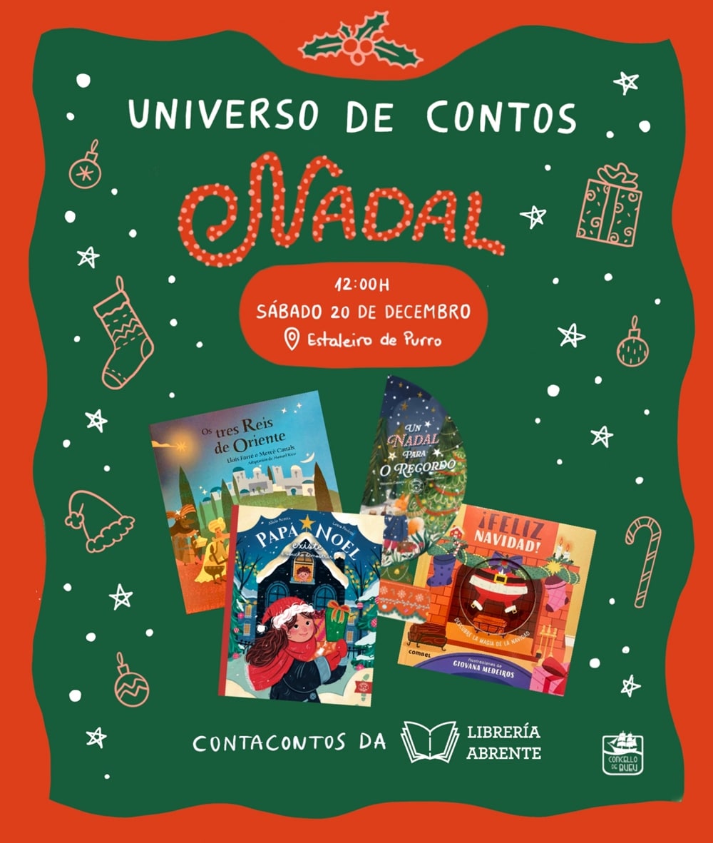A sesión será no Estaleiro de Purro e contaranse ‘Os tres Reis de Oriente’, ‘Papá Noel existe’, ‘¡Feliz Navidad!’ e ‘Un Nadal para o recordo’.