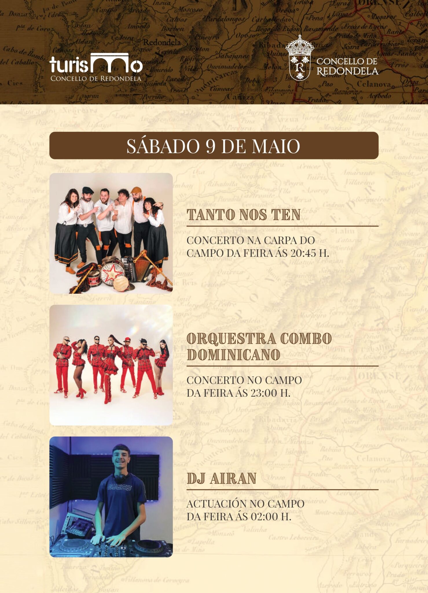 • Sábado 9: Grupo de gaitas Airiños de San Simón, Tanto nos Ten (20:45 h), gran verbena coa Orquestra Combo Dominicano (23:00 h) e DJ Airan.