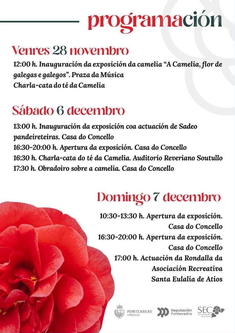 Inauguracións, obradoiros, catas de té, charlas, actuacións musicais e exposición son a aposta do goberno para esta edición que supón unha recuperación da mostra, “a Exposición da Camelia é un evento que recuperamos logo de anos abandonada e polo que apostamos porque queremos que o noso Concello sexa o punto de encontro para amantes da natureza, da arte floral e do patrimonio botánico que representa esta flor tan especial para Galicia.”