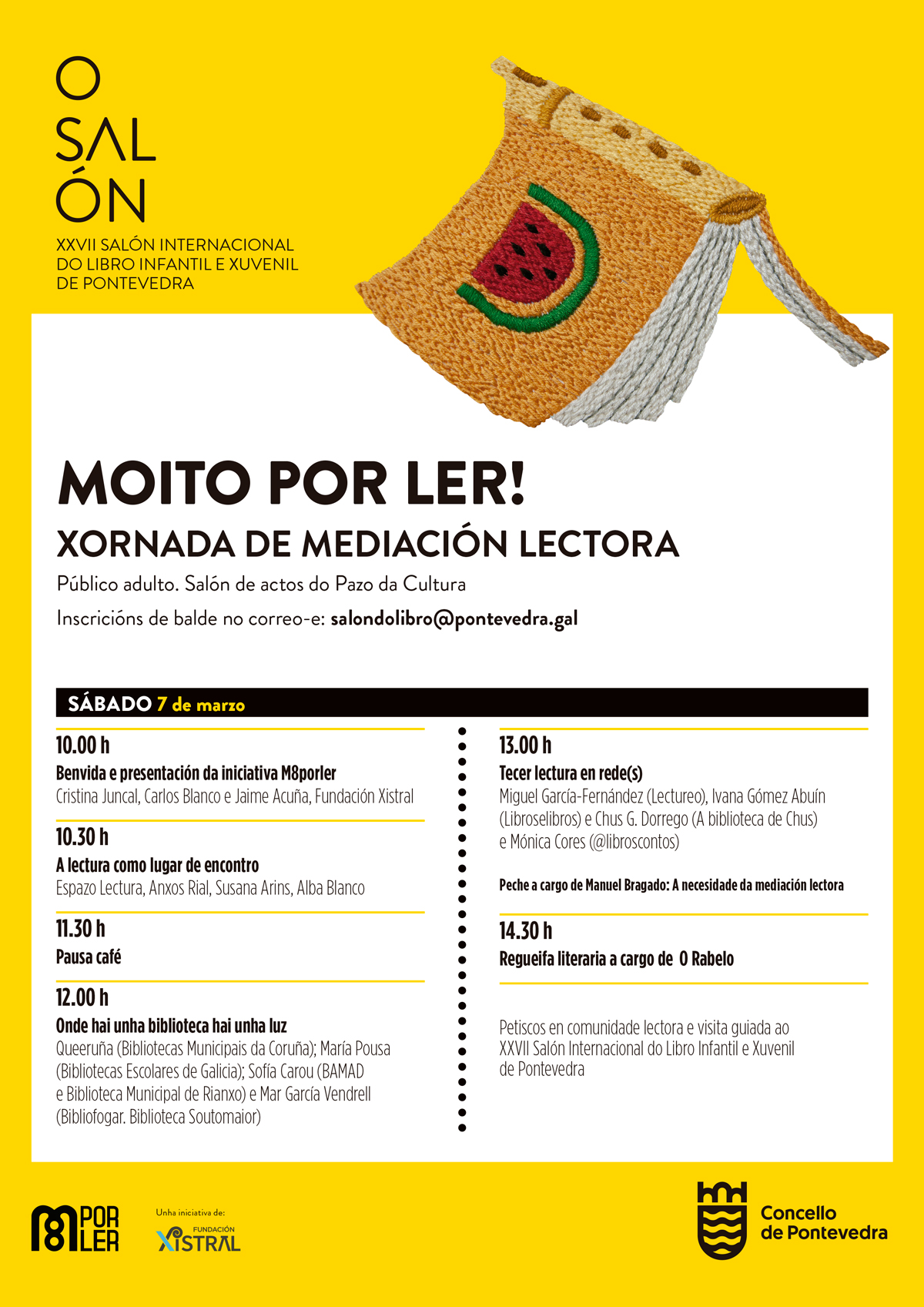 Cremos que o Salón pode ser referente na mediación lectora e por iso imos traballar con docentes, bibliotecarias, libreiros e todas aquelas persoas que queren achegarlle os libro á rapazada. Noutros momentos houbo un congreso e agora queremos dar un paso adiante con esta iniciativa que é a xornada de mediación lectora ‘Moito por ler’ que imos desenvolver grazas á Fundación Xistral e ao seu proxecto M8PORLER: una plataforma dixital para visibilizar e dignificar o libro galego, para tecer redes entre todos os axentes que forman parte da cadea do libro. Sen eles sería imposible organizala”.