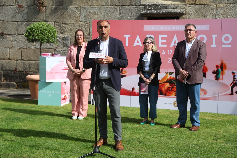 A Praza do Mosteiro, en San Xoán, foi escenario este xoves da presentación da terceira edición do TapeaPoio 2026. O certame de tapas terá lugar do 1 ao 17 de maio en 23 establecementos de todo o concello, que ofrecerán un total de 28 tapas divididas nas modalidades creativa e tradicional por un prezo único de 4 euros.
