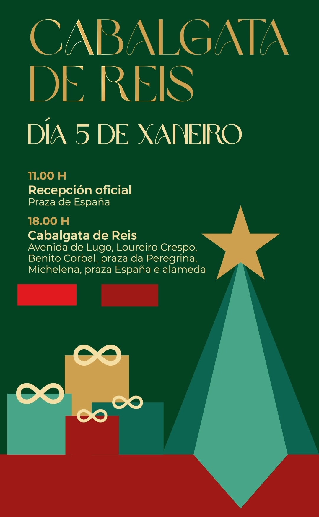 O percorrido da Cabalgata será o seguinte: saída dende a Avenida de Lugo, Loureiro Crespo, Benito Corbal, praza da Peregrina, Michelena, praza de España e remate na Alameda.