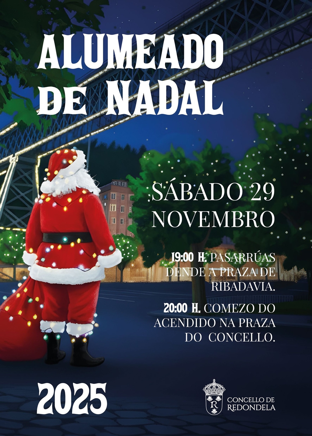 Redondela celebra o vindeiro sábado, 29 de novembro, o acendido das luces de Nadal cun gran espectáculo. A praza do Concello e as rúas do centro da vila acollerán un pasarrúas e moitas sorpresas desde as 19.00 horas.