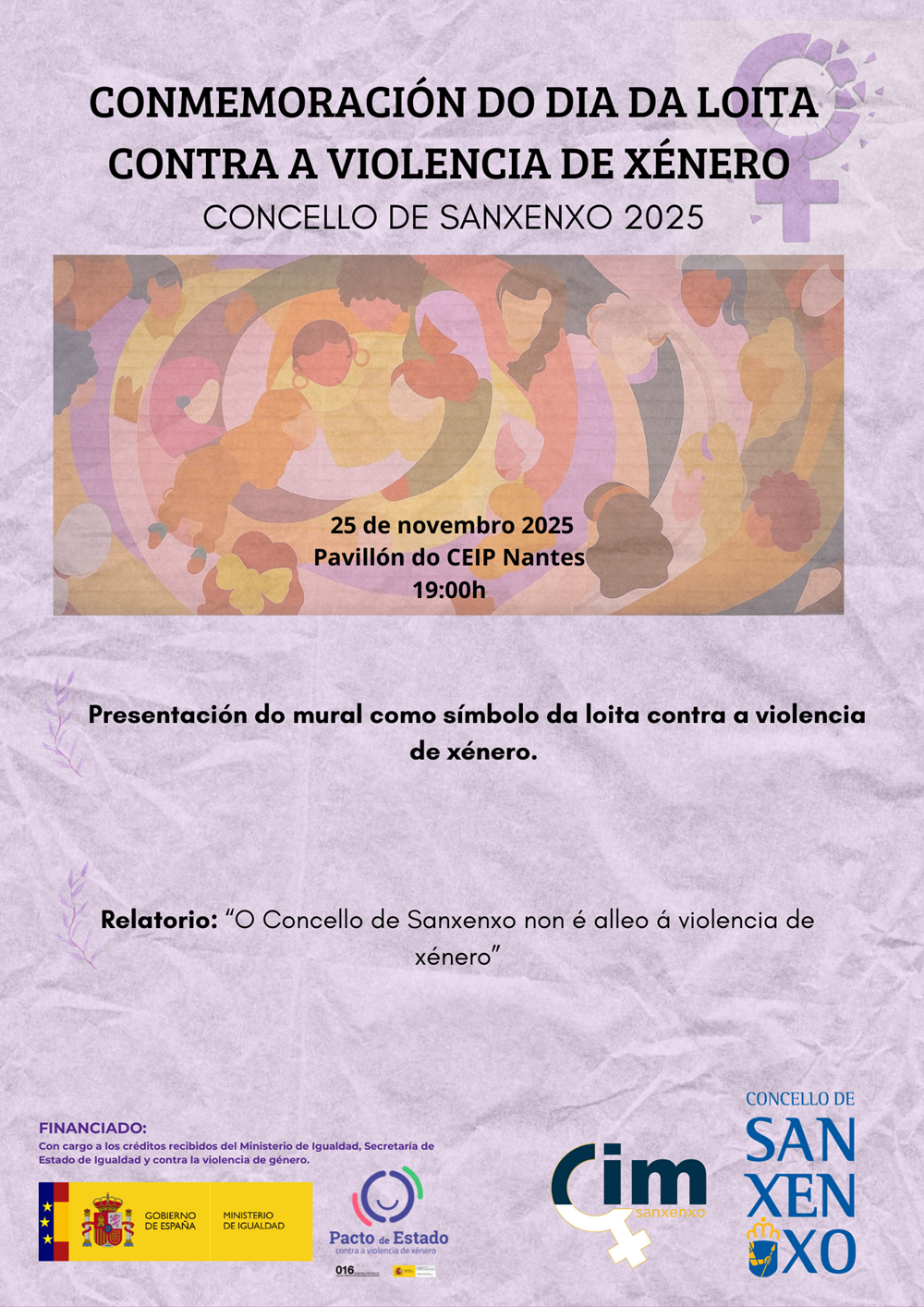 O Concello de Sanxenxo dará voz a catro mulleres do municipio que sofren malos tratos no Día Internacional da Violencia contra a Muller. Será nun acto aberto ao público organizado pola Concellería de Servizos Sociais, dirixida por Paz Lago, a través do CIM, que terá lugar o próximo 25 de novembro ás 19 horas no pavillón de Nantes. “Queremos seguir sensibilizando e visibilizando un problema que existe e ao que non podemos ser alleos nin inmunes”, asegura Lago.
