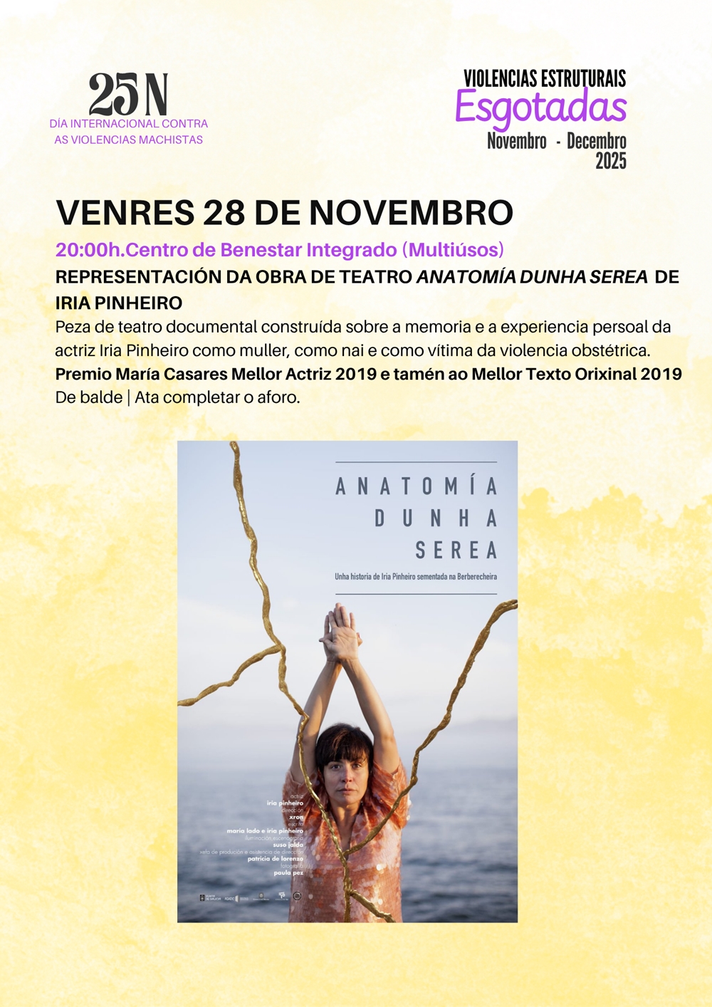 Seguirá a programación o venres 28 de novembro ás 20:00h. coa representación da obra de teatro ‘Anatomía dunha serea’ de Iria Pinheiro e pechará a programación deste ano o 18 de decembro co obradoiro ‘The Experience’, presentación do libro ‘Agotadas’ de Alba Cobo.