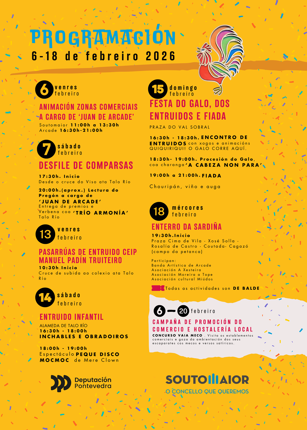 Dende o Goberno Local convidan a todo o mundo a desfrutar destas datas xa que “en Soutomaior, o Entruido vívese con humor e retranca!”
